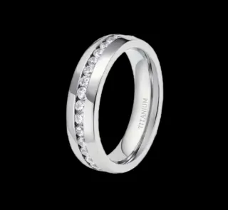 Elegante anillo de titanio y plata con un diseño moderno y detalles brillantes. Perfecto para añadir un toque de distinción. - Banda central con incrustaciones de circonios - Acabado pulido y brillante. - Se entrega con caja unboxing personalizada de regalo.