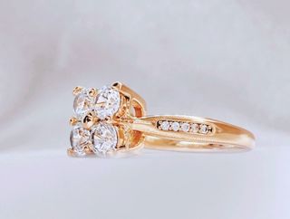 Anillo laminado en oro de 18k con su respectiva marca que representa la garantía del chapado en oro que tiene. -El metal interno es titanio cubierto por 40 micras de oro 18k. -Talla 15. Disponible en distintas tallas. Espectacular color y brillo identico al oro real, joyería artesanal hecho a mano con diseño de cuatro gemas de Zirconio clase AAAAA que brillan como los diamantes a la luz del sol detalles en la banda! - Diseño floral con cuatro gemas principales. Anillo de oro 18k sobre titanio. - Banda adornada con pequeñas gemas incrustadas. -A estrenar con cajita y etiqueta.