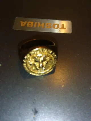 Anillo laminado en oro de 24k con sello de contraste 999 como garantía de la calidad del chapado en oro que tiene. -El metal interno es titanio cubierto por 60 micras de oro 24k. Espectacular color y brillo identico al oro real! Resistente al agua no pierde color. -Talla ajustable se abre y cierra a la medida deseada. -Magnifico anillo de oro sobre titanio con diseño griego antiguo. Es un anillo sello de oro sobre titanio cuyo sello es un impresionante águila trabajado en punta de diamante por eso tiene un brillo especial. Joyería artesanal hecho a mano. - Acabado brillante. -A estrenar con cajita y etique -Borde con patrón griego.