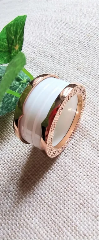 Ideal Ideal!! Magnífico clásico de 4 bandas. Inspiración bzero1, color oro rosa y cerámica blanca. Talla 16. Unisex. Acero de titanio. No sé estropea y es hipoalergénico. Preferiblemente envío por cualquier transportista qué no sea Correos 🙏. Más cositas en mi armario...