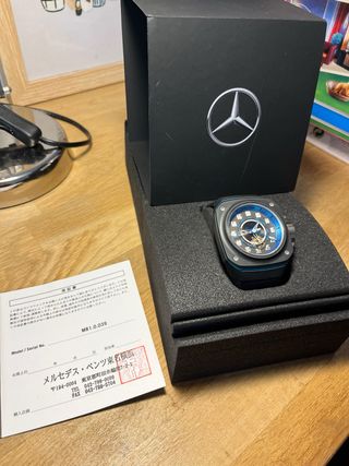 Fastback de la marca Gorilla referencia MB1.0.039 FULL SET, como el EQ by Mercedes-Benz, edición limitada de 250 unidades. Calibre de alca calidad Miyota 90S5. Los materiales de fabricación principales son: Caja: La parte media de la caja (mid-case) es de carbono forjado, lo que le otorga gran resistencia y ligereza. Bisel: Fabricado en cerámica resistente a los arañazos con un acabado pulido o mate, dependiendo del modelo específico. Fondo de caja y corona: Son de titanio atornillado, conocido por ser hipoalergénico y ligero. Anillo intermedio de la caja: Un anillo de aluminio anodizado se encuentra entre el bisel y la caja de carb
