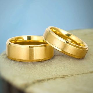 Conjunto de anillos de alianzas de Boda,de Titanio puro en Dorado. Medidas 6mm Medidas 8mm Disponible combinación 8mm y 6mm / 6mm y 6mm / 8mm y 8mm. Tallas disponibles 6,7,8,10,11,12,13 Conjunto de anillos de Alianzas para el y para ella a 70€
