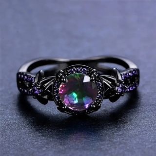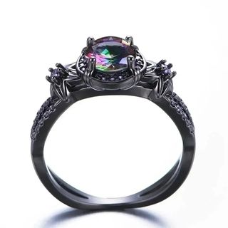 Anillo Vintage Negro con Circonitas negras arcoiris de acero de Titanio. Tallas disponibles 7,8