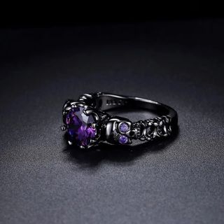Anillo Gótico negro con Circonitas y Calaveras de acero de Titanio puro. Tallas disponibles 6,7,8,9