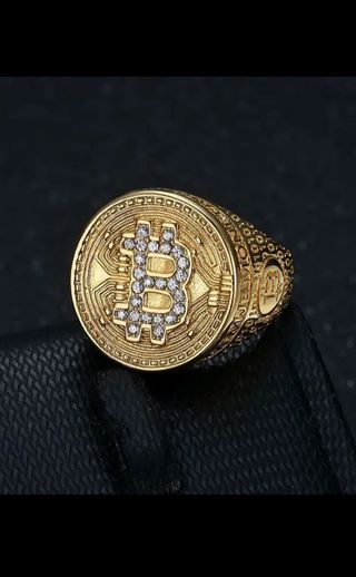 Anillo de Bitcoin con Moissanicas Brillantes de Titanio,un anillo Lujoso. Simbolo de Riqueza. Tallas disponibles 10,11,12,13.
