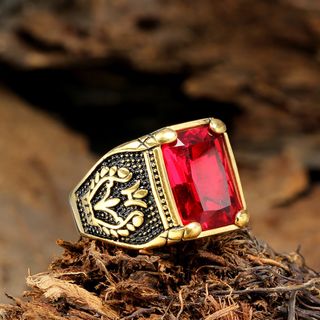 Anillo de oro con un diseño detallado en el centro. - Material: Oro24k, cobre, plata titanio - Color: Dorado