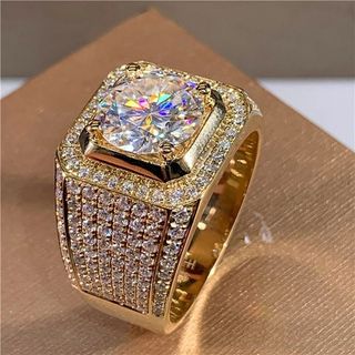 Anillo de Titanio Dorado,con Moissanicas Brillantes Lujoso para hombre y mujer Preguntar por tallas disponibles 8,9,10,11,12,13 Ideal para regalar.