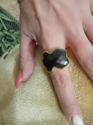 Elegante anillo de la marca Tous con un diseño llamativo. - Piedra central de color negro. - Detalles metálicos en tono dorado.