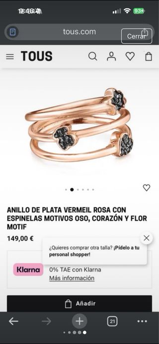Anillo Tous con diseño de logo de plata, de talla así medido con una app 17,53mm vamos 17,7 mm, un anillo que queda precioso en el dedo. Tengo más productos de tous en mi perfil que seguro te encantarán, plata, vermeil, anillos, collares, de todo, y voy subiendo si quieres echar un vistazo o seguir este perfil :)