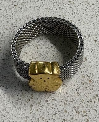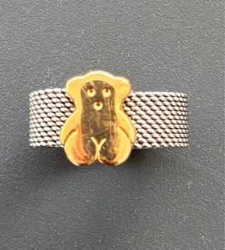 Anillo de la marca Tous con un diseño de oso. - Fabricado en acero y oro. - Diseño de malla en la banda.