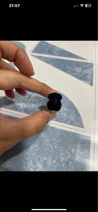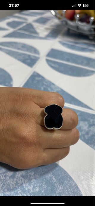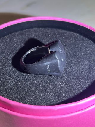 Anillo de la marca Tous de acero y plástico negro, talla 19mm-19,35mm es difícil medir el diámetro con una app. Tengo más productos en mi perfil de tous si te interesa, plata o vermeil, echa un vistazo o sígueme que voy subiendo cosas de vez en cuando.