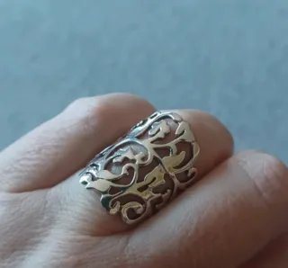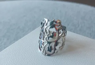 Anillo Tous de plata con un diseño calado y detalles intrincados. No se incluye caja original.