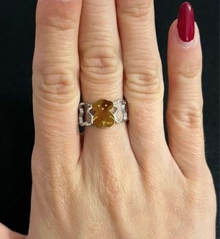 Anillo Tous con diseño de oso con espinelas muy brillantes - Plata bañada en oro. - Color dorado Talla en las fotos Usado 1 sola vez