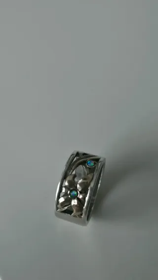 Elegante anillo de la marca Tous, con un diseño delicado y brillante. Presenta un diseño único con pequeños diamantes incrustados en la mitad del anillo, combinándose con el tono plata liso. Es fantástico!! Talla 14,9mm.