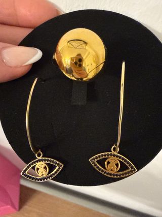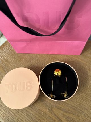 Conjunto de joyería de la marca Tous, incluye un anillo y un par de pendientes. - Anillo talla 19. - Pendientes con diseño de ojo. - Acabado en tono dorado.