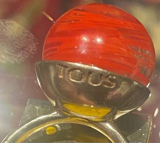 Anillo de la marca Tous con un diseño llamativo. - Color plata con detalles multicolor. - Diseño moderno y elegante.