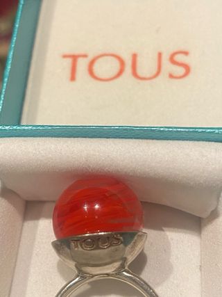 Anillo de la marca Tous con un diseño elegante y llamativo. - Elaborado en plata. - Detalle de piedra de cristal en color rojo. El tamaño es para dedos finos . Mirar última foto con la medida .