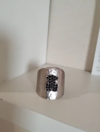 Anillo de la marca Tous con un diseño de oso. - Piedra facetada. - Color negro. Lo vendo porque no me lo pongo desde hace mucho tiempo.