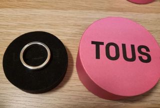 Anillo de plata de primera ley de Tous, nuevo sin estrenar, talla 16, viene grabado con el nombre de la marca, sin utilizar ya que compré un pack de 3 y sólo me quedo los otros 2, por eso vendo este.