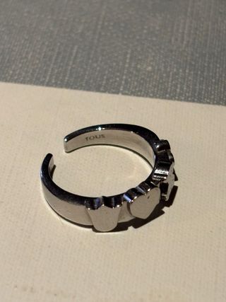 Vendo anillo original de TOUS con diseño de oso y figuras TOUS Material: acero inoxidable. Es ajustable, por lo que se adapta a varias tallas. Está en buen estado. Diseño muy bonito y característico de la marca. Usado pocas veces. Lo vendo porque no lo uso.