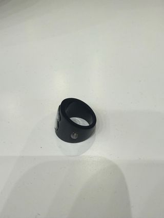 Anillo con un diseño esférico y calado. - Detalle en plata. - Acabado en negro. - Es un 17 . -De rodio