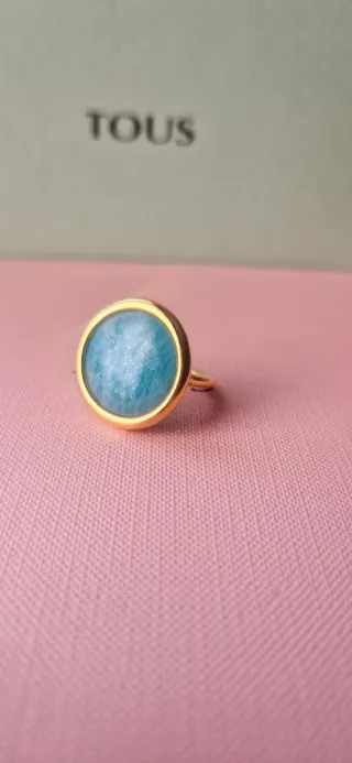 Anillo Tous vwemeil y piedra turquesa. - Diseño elegante y moderno. - vermeil dorado - Piedra central de color turquesa.