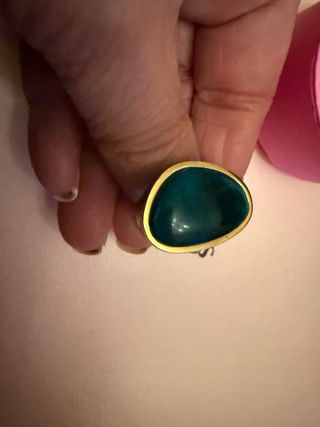 Anillo de la marca Tous con un diseño elegante. - Acabado en oro. - Detalle central en color turquesa. - Talla 12, vendo porque ya no me vale Ref. c112825510 Anillo TOUS Cocktail con baño de oro 18 kt sobre plata y glass transparente verde cabujón irregular. Tamaño del anillo: 2,65cm. Plata de primera ley recubierta de oro de 18kt con un espesor de 3 a 5 micras y sin ningún otro metal entre ambos. Técnica de producción: Fundición.