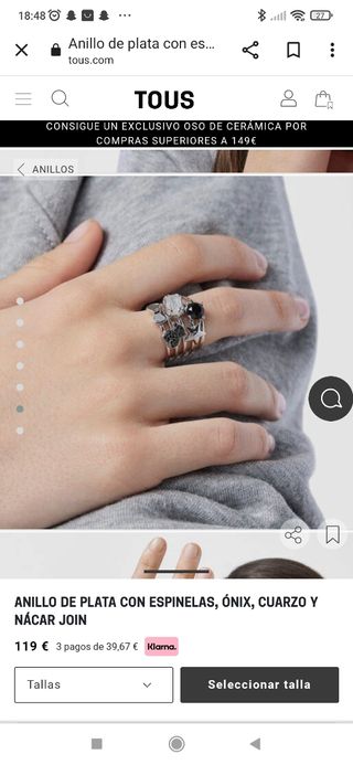 Dos juegos de anillo más pendiente de Tous. Cada juego a 35€