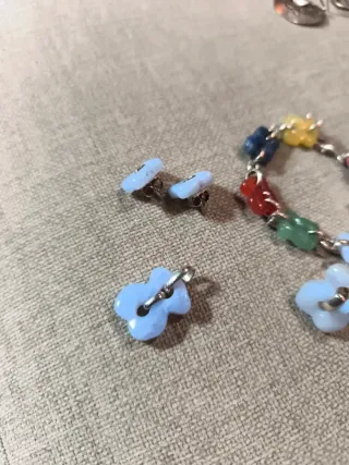 Conjunto de joyería Tous colección Cruise que incluye pendientes, un anillo, un colgante y una pulsera. Cada pieza está adornada con detalles de ositos. - Pendientes con forma de osito. - Anillo con diseño de osito. - Colgante con forma de osito. - Pulsera con eslabones y dijes de ositos multicolores.