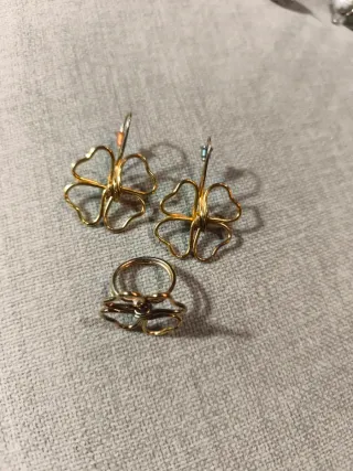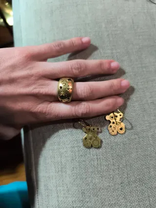 Conjunto Tous Anillo y Pendientes Dorados