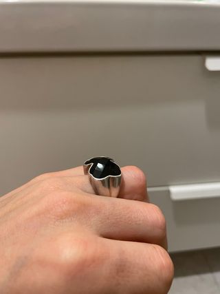 Anillo plata de la marca Tous con piedra de ónix negro talla 10,5 - Diseño elegante y moderno. - Combina plata y negro. En muy buen estado. Mira mi perfil tengo muchas cositas hago descuento con cuatro cosas