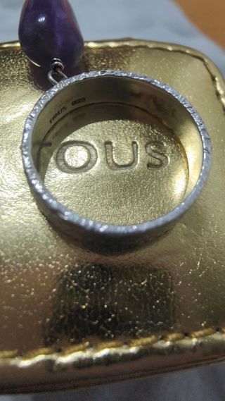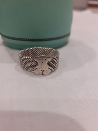 Anillo Tous de malla y motivo en plata de primera ley. En perfecto estado.Talla 16, aproximadamente un diámetro de 18 mm. Ancho malla 7mm. Grosor motivo 3mm. Se entrega con caja original y bolsa de tela original.