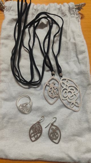 collar plata mariquita y flor 70€. Longitud total 92 cm anillo plata mariquita 30€ Pendientes plata mariquita i flor 35€.
