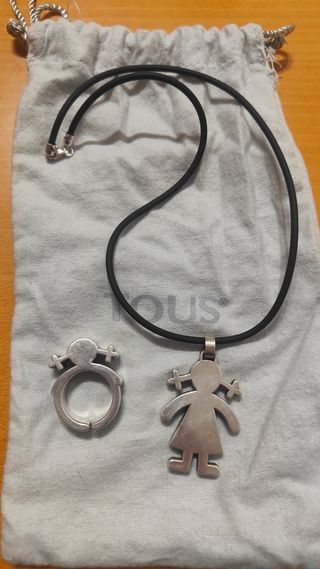 colgante oso pirata tous de plata. largo 4.5 cm Anillo oso pirata de plata ajustable.