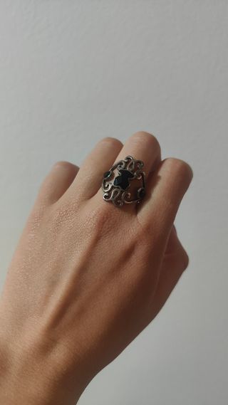Elegante anillo de la marca Tous, con un diseño delicado y sofisticado. - Elaborado en plata. - Detalle de perla central. - Acompañado de pequeñas piedras oscuras.