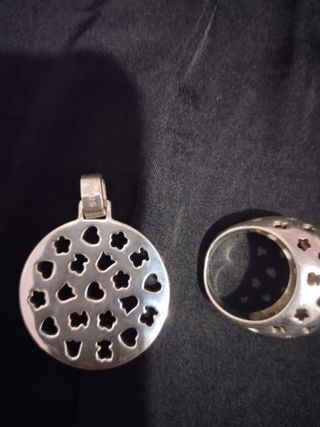 Da talla 1,8cm y el colgante 3,2cm el colgante sigue nuevo y el anillo Como nuevo