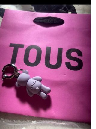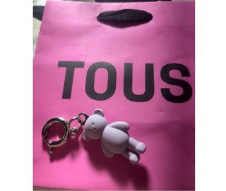 Llavero de la marca Tous con un adorable diseño de oso. - Color rosa pálido. - Detalle de anilla plateada.