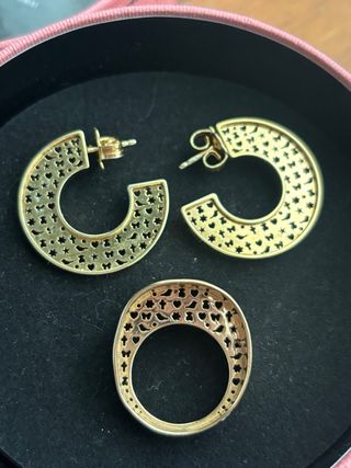 Precioso conjunto de joyería Tous de la coleccion Constellation - Pendientes tipo aro. - Anillo a juego.