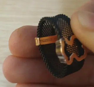 Anillo de la marca Tous de la coleccion Icon Mesh, en plata 925 y baño de oro 18k, con diseño del característico osito. - Malla negra. - Detalle de oso. - Cierre con detalle de la marca. Impecable y realmente precioso. Precio en tienda 99€.
