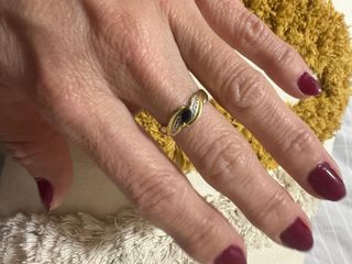 Elegante anillo de goldfilled y una circonita azul o color zafiro con un diseño delicado de estilo vintage, a menudo descrita como un diseño de "dos bandas". Suele estar fabricado en gold-filled (oro laminado) de 14k o 18k, un material duradero que mantiene su apariencia de oro por mucho tiempo. - Circonita azul con talla ovalada. - Tiene un aire vintage o clásico contemporáneo, muy buscado por su elegancia sencilla. - Talla 18.