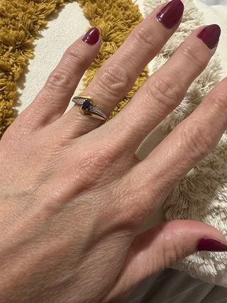 Elegante anillo de oro de 9 quilates con un zafiro central y oro blanco. Talla 12 Nuevo a estrenar - Diseño moderno y delicado.