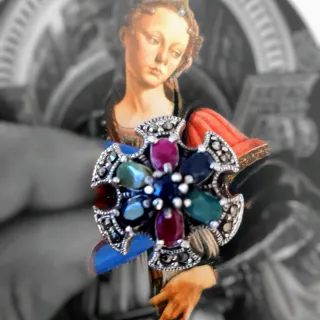 Anillo cruz Plata de ley 925 circonitas Multicolor