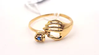 Anillo de oro de 18 quilates con un diseño único de manos entrelazadas y un circonita azul. Ref.25392 ENTRE JOYAS calle Ercilla 35 Bilbao peso y medidas en las fotos ,se hacen envios por esta plataforma - Material: Oro 18k - Piedra: Zafiro azul