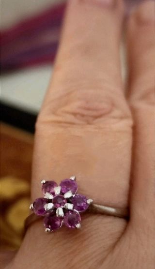 Sortija de Plata de Ley 925 milésimas,lleva el cuño de 925 en el aro por dentro y va rodiado. Las esmeraldas, zafiros y rubíes son auténticos no son imitación son piedras preciosas naturales sin tratar. La tengo en talla 12 y 13 La plata rodiado no se ensucia ni se pone negra con el paso de los años, no se estropea y simula el color y el brillo del oro blanco que en realidad es oro amarillo rodiado con el mismo baño de rodio que estás sortijas. No requiere mantenimiento solo evitar detergentes y cremas abrasivas. Ver fotos y si necesitas más fotos o información no dudes en preguntarme.