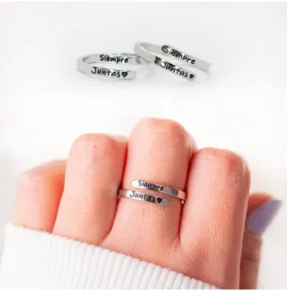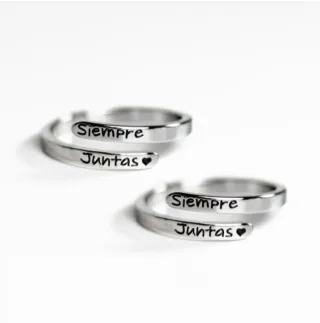Set de dos anillos ajustables con la inscripción Siempre Juntas y un pequeño corazón. - Diseño abierto y moderno. - Ideales para compartir con alguien especial.