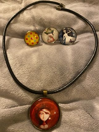 Collar con colgante y 3 anillos