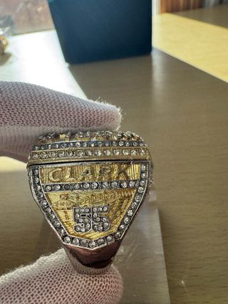 Anillo conmemorativo del equipo KC Chiefs. - Diseño detallado con piedras. - Acabado en dorado y rojo.
