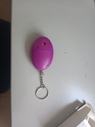 Alarma personal de llavero que al tirar de la anilla emite un fuerte sonido que se oye a decenas de metros, para proteger a su hij@ cuando salga de noche, este fuerte sonido hará que el maleante salga huyendo o que la gente que lo oiga acuda en su ayuda, cuantos casos de robos, violaciones, etc se podrian haber evitado con este sencillo aparatito.