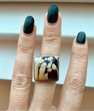 Anillo tipo sello con una piedra de ágata en tonos beige y marrón. La montura es de plata de ley. - Diseño de piedra con veteado natural. - Montura de plata de ley. El ágata es una piedra preciosa que encarna la belleza interior