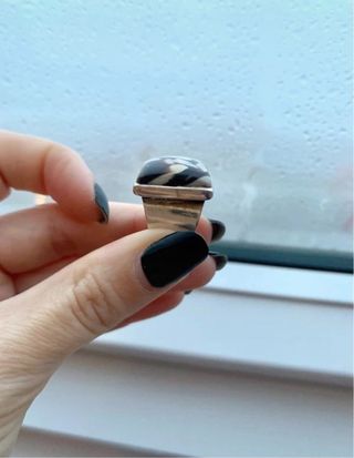 Anillo Sello Plata Ley Ágata Beige y Marrón